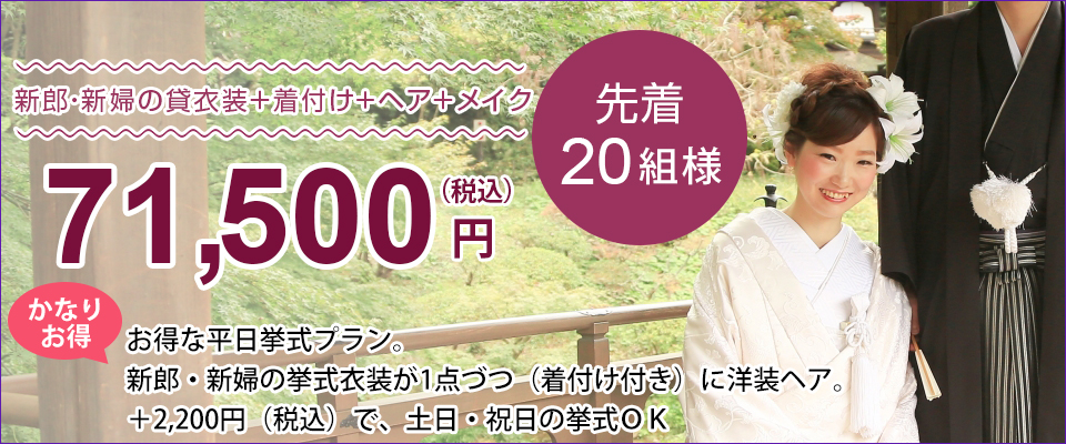 特別平日挙式プランは「神社で挙式を挙げたい。でも価格は抑えたい」価格を抑えた上でとお考えの方に向けて考えた、地域ではかなりお安いプランです。
